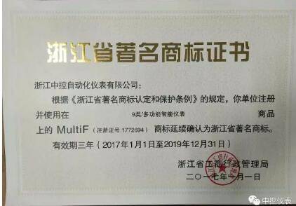 近日,中控MultiF商標延續確認為浙江省著名商標。并獲得證書。MultiF商標是我公司最主要的產…